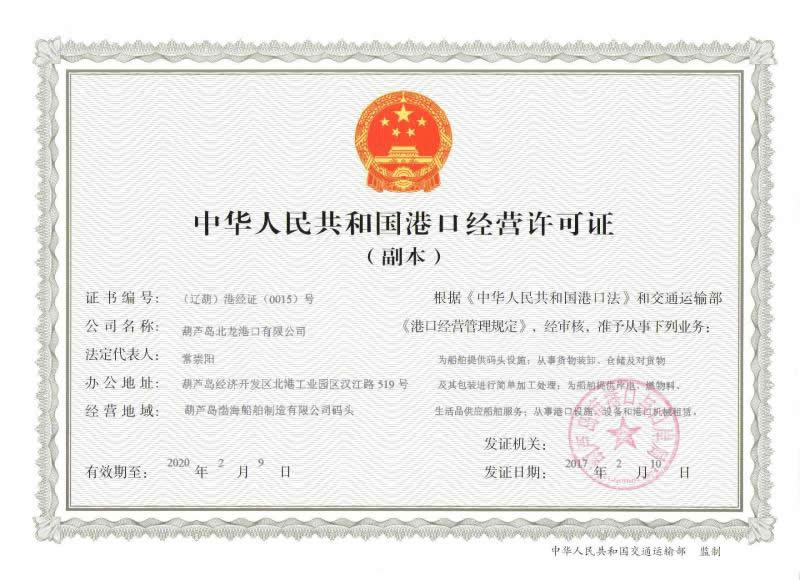 葫蘆島北龍港口有限公司是集團(tuán)與我市海洋投資集團(tuán)合資成立的股份公司。集團(tuán)海域使用面積111.0725公頃,岸線總長(zhǎng)度2000米,現(xiàn)有碼頭岸線1155米,港池深度-8米。建設(shè)3個(gè)5000噸級(jí)散雜泊位,2016年吞吐量已達(dá)到180萬(wàn)噸。